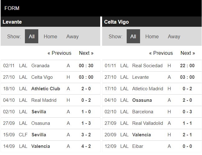 Sở hữu 5 điểm qua 6 lượt trận đầu tiên tại La Liga mùa bóng năm nay, Celta Vigo đang tạm thời có mặt ở vị trí thứ 17 trên BXH giải đấu. Khoảng cách giữa họ và đội bóng đứng thứ 18 chỉ là 1 điểm. Cho tới thời điểm hiện tại, Celta Vigo mới chỉ giành được 1 chiến thắng và đó là thắng lợi 2-1 trước Valencia diễn ra tại vòng 2. Từ sau chiến thắng đó, Celta Vigo trải qua 4 lượt trận liên tiếp toàn hòa và thua. Trong chuỗi trận này, Celta Vigo để thua tới 3 trận. Do vậy mà họ không có được sự tự tin khi chuẩn bị bước vào màn so tài với Levante.