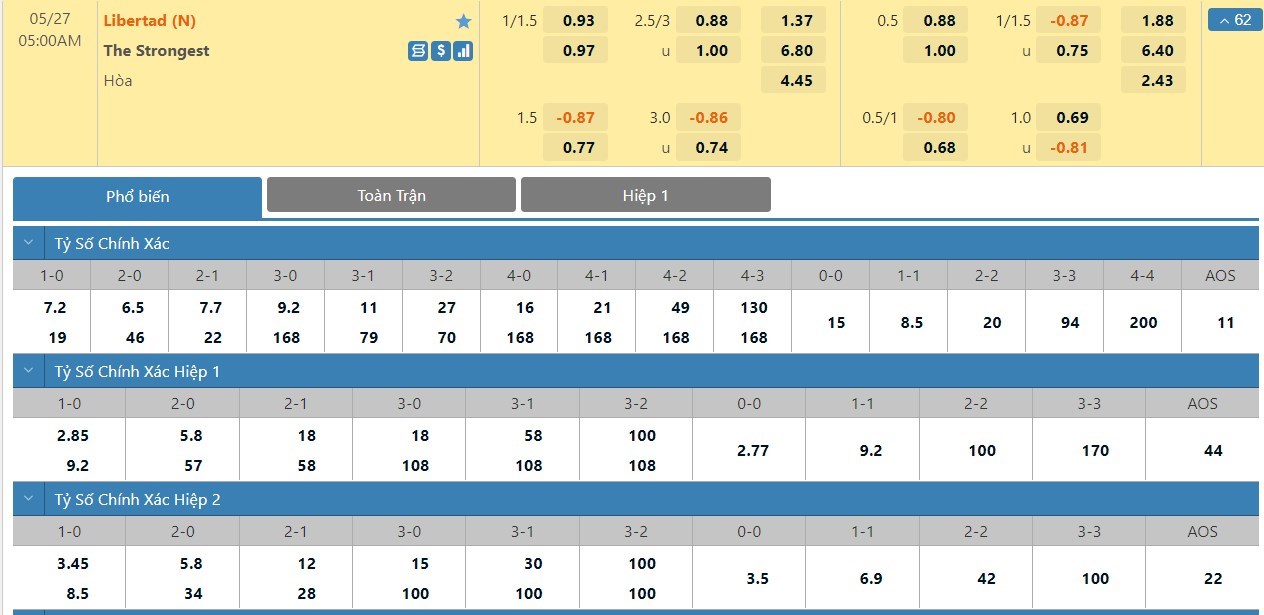 Xem tỷ lệ kèo cá cược bóng đá trực tuyến Libertad Asuncion vs The Strongest