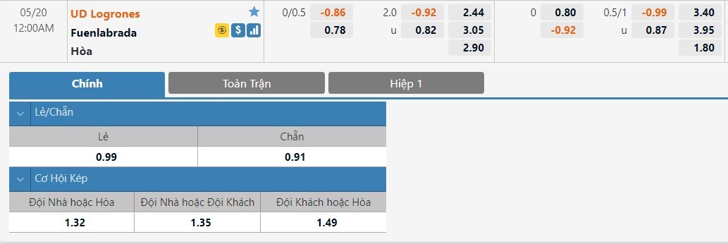 Tỷ lệ kèo cá cược bóng đá trận Logrones vs Fuenlabrada