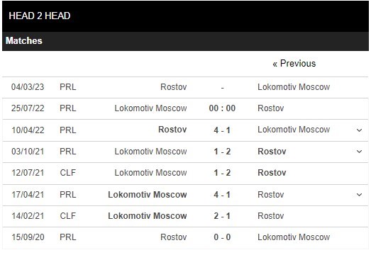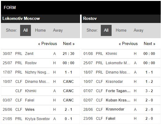 Trong 5 trận đấu gần nhất trên mọi đấu trường, Lokomotiv Moscow đã sở hữu cho mình 11 pha lập công cùng với 7 lần phải vào lưới nhặt bóng. Bên kia chiến tuyến, Rostov đã sở hữu 7 bàn thắng, còn lại là việc hàng thủ đã phải nhận 7 bàn thua. Ở 5 lần gần nhất hai đội bóng này chạm trán nhau thì tất cả cuộc đối đầu đó đều kết thúc với tổng số bàn thắng từ 3 trở lên. Với tỷ lệ tài xỉu 2 1/2 trái thì các chuyên gia cũng đang tin tưởng vào khả năng nổ Tài ở cuộc đối đầu này.