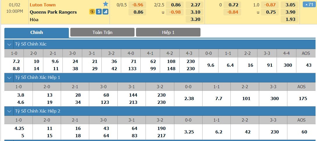 Tỷ lệ kèo cá cược bóng đá trận Luton vs Queens Park Rangers