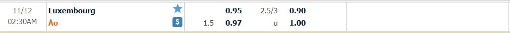 Tỷ lệ kèo cá cược bóng đá trực tuyến trận Luxembourg vs Áo