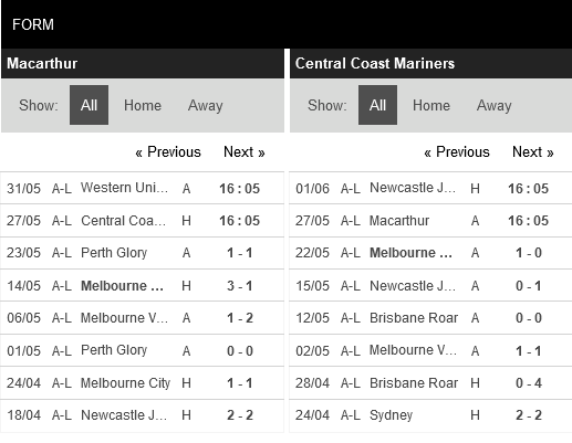 Thống kê phong độ Macarthur FC vs Central Coast Mariners