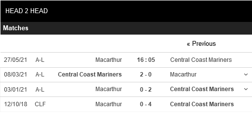 Thống kê đối đầu Macarthur FC vs Central Coast Mariners