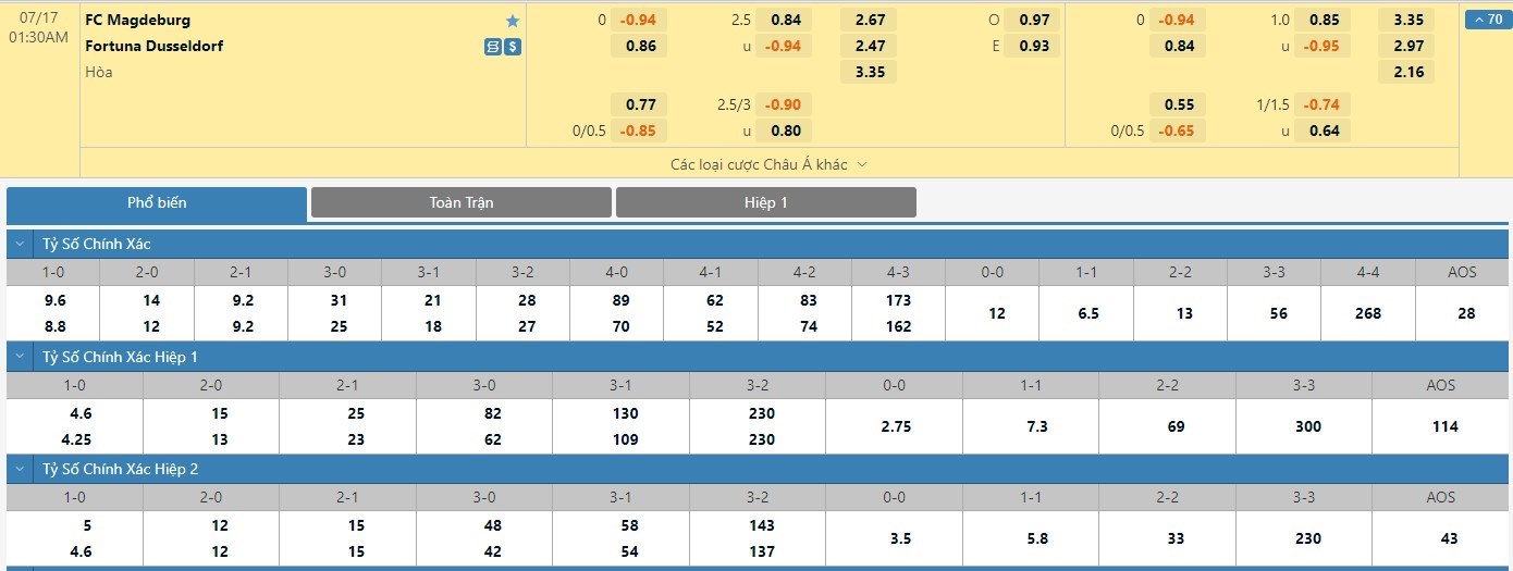Xem tỷ lệ kèo cá cược bóng đá trực tuyến Magdeburg vs Dusseldorf