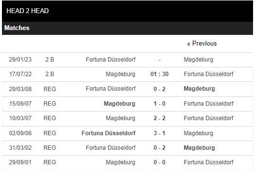 Thống kê phong độ Magdeburg vs Dusseldorf