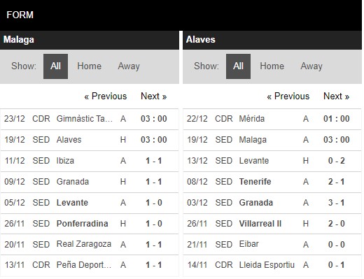 Thống kê phong độ Malaga vs Deportivo Alaves