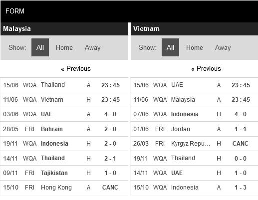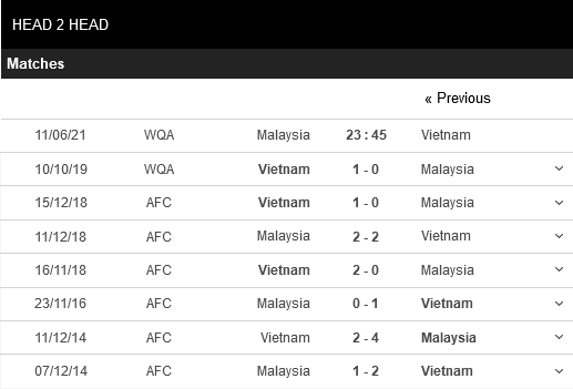 Thống kê phong độ Malaysia vs Việt Nam