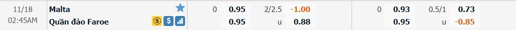 Tỷ lệ kèo cá cược bóng đá trận Malta vs Đảo Faroe