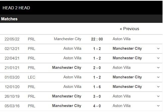 Sự vượt trội của chủ nhà còn được thể hiện qua thành tích đối đầu của đôi bên những năm gần đây. Cụ thể ở 5 lần gần nhất đôi bên chạm mặt thì nhà ĐKVĐ đã dễ dàng bỏ túi cho mình 5 chiến thắng tuyệt đối. Đó là lý do tại sao chúng ta không nên mạo hiểm niềm tin vào Aston Villa ở kèo đấu tới. Việc chỉ giữ sạch lưới 1 trên 4 trận ra quân gần nhất cho thấy hàng thủ của chủ nhà đã có sự sa sút ở giai đoạn cuối mùa. Và nếu có thể tận dụng được những sai lầm của Manchester City thì Aston Villa hoàn toàn có thể kiếm về bàn danh dự ở vòng đấu tới.