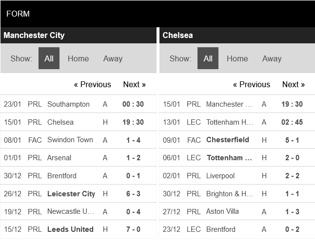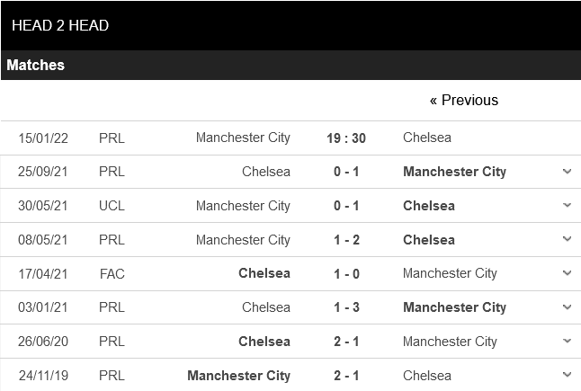 Xét về thành tích đối đầu thì lịch sử đang đứng về phía Chelsea. Trong 10 trận đối đầu gần nhất, Chelsea thắng 5, hòa 1 và thua 4 trước Man City. Nhưng xét trên phương diện kèo thì Chelsea hoàn toàn vượt trội với 7 trận thắng và 3 trận thua. Do đó, khả năng Chelsea làm nên bất ngờ trước Man City ở trận đấu tới là hoàn toàn khả thi.