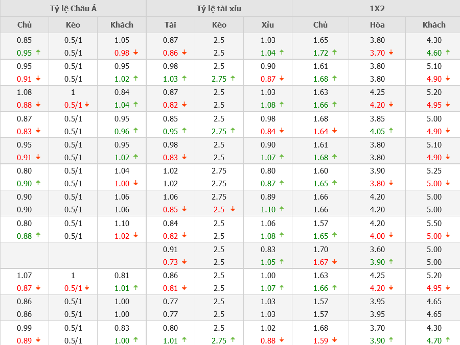 Kèo tài xỉu chỉ dừng ở 2,5 bàn cho thấy trận đấu tới hứa hẹn sẽ diễn ra với thế trận chắc chắn. Trong 10 trận đối đầu gần nhất của 2 đội thì chỉ có 3 trận nổ tài. Vì vậy, trận đấu tới cũng có thể xuất hiện ít bàn thắng.