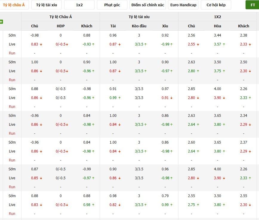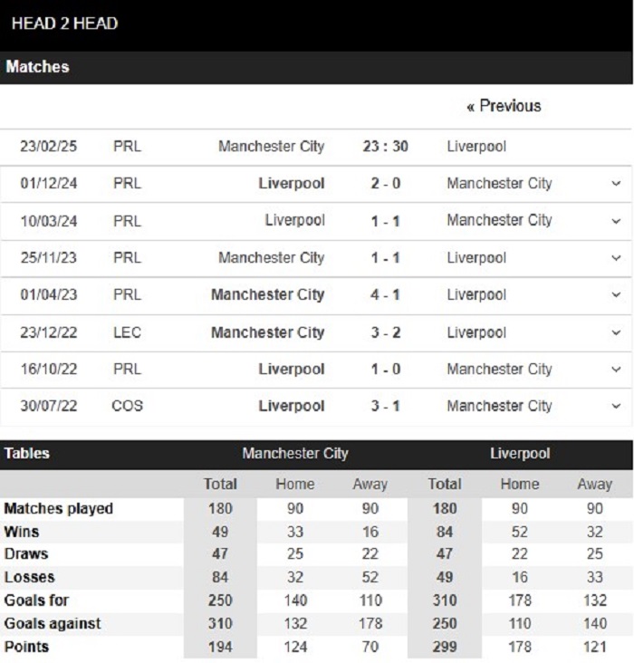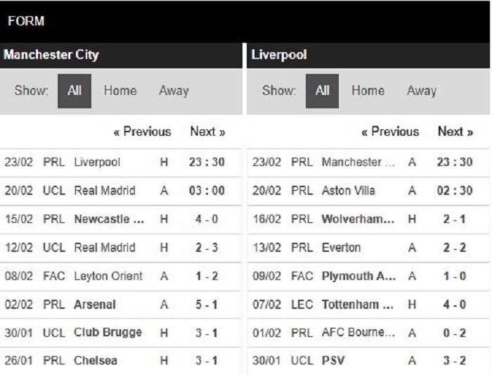 Xem tỷ lệ kèo cá cược bóng đá trực tuyến Manchester City vs Liverpool