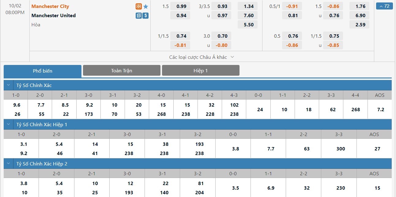 Trong 5 trận đấu gần nhất của mình, Manchester City đã có 3 trận đấu mang về được cho mình ít nhất là 1 bàn thắng trong hiệp đấu đầu tiên thì Manchester United cũng đã có 3 lần làm được điều này trong 45 phút đầu tiên. Với tỷ lệ kèo hiệp 1 ở trận đấu này được đưa ra là -3/4 trái thì người chơi nên tin tưởng vào đội khách trận này. Bước sang khoảng thời gian hiệp 2 sẽ là lúc tốc độ trận đấu được đẩy cao.
