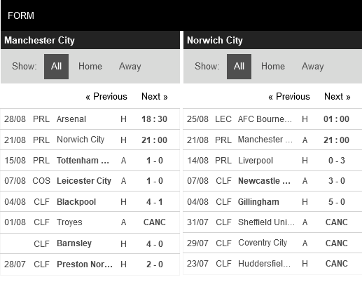 Thống kê phong độ Manchester City vs Norwich