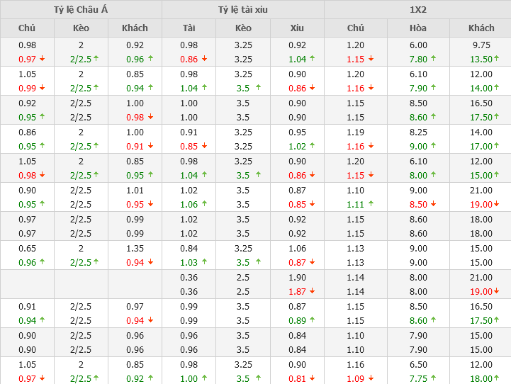 Kèo chấp ban đầu là Man City chấp 2 hòa và có xu hướng tăng lên 2,25. Đây là dấu hiệu cho thấy một chiến thắng đậm đang chờ đón đội bóng thành Manchester.