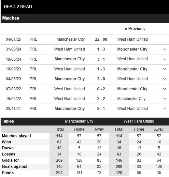 Nhận định kèo cả trận Manchester City vs West Ham United