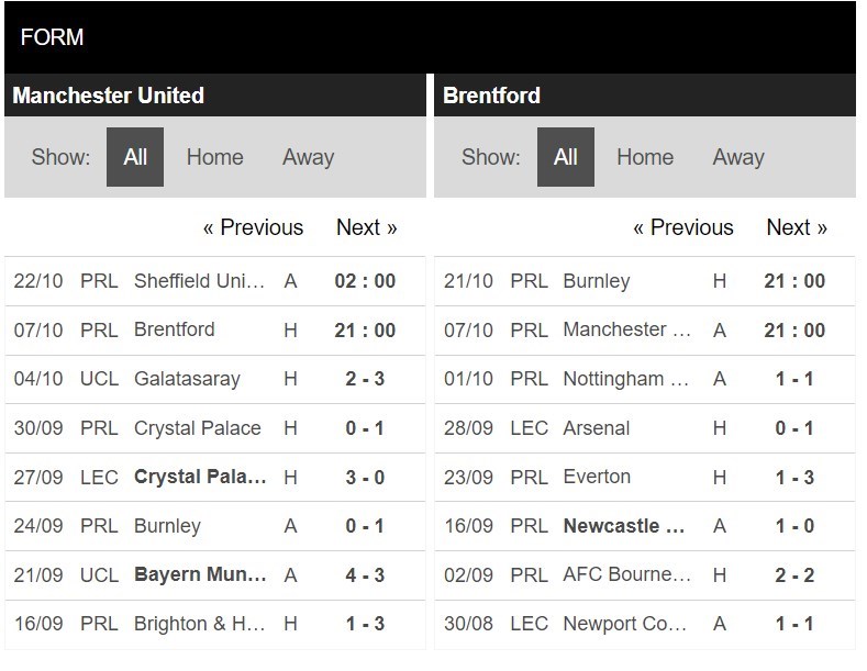 Để thua cả 2 lượt trận tại Champions League và đang đứng thứ 10 tại giải Ngoại hạng Anh, áp lực dành cho HLV Erik ten Hag và các học trò đang là rất lớn. Brentford phải hành quân đến sân Old Trafford trong bối cảnh mà họ không có được trạng thái phong độ tốt. Họ đã trải qua chuỗi 5 trận đấu liên tiếp không thắng tại Ngoại hạng Anh.