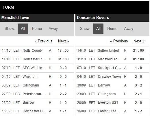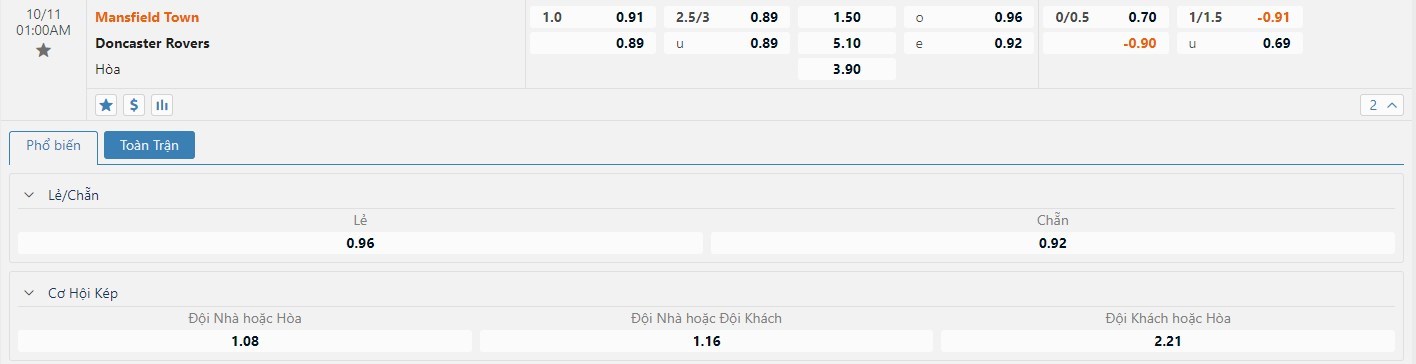 Xem tỷ lệ kèo cá cược bóng đá trực tuyến Mansfield vs Doncaster