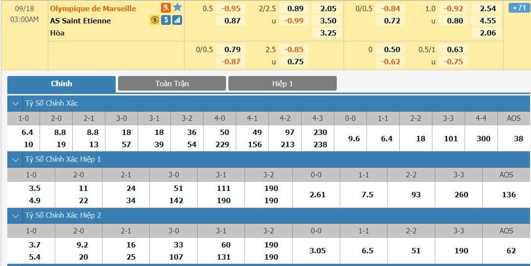 Xem tỷ lệ kèo cá cược bóng đá trực tuyến Marseille vs Saint-Étienne
