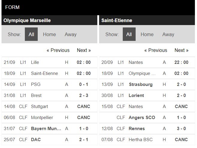 Thống kê phong độ Marseille vs Saint-Étienne