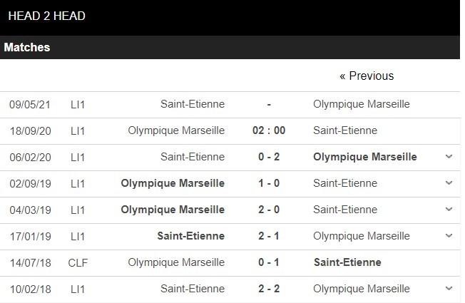 Thống kê đối đầu Marseille vs Saint-Étienne