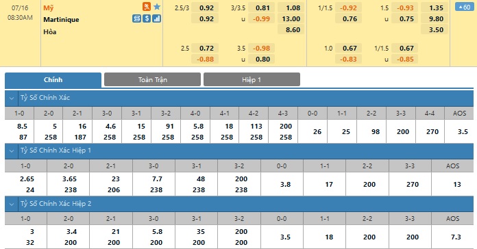 Xem tỉ lệ kèo cá cược bóng đá trực tuyến Martinique vs Mỹ