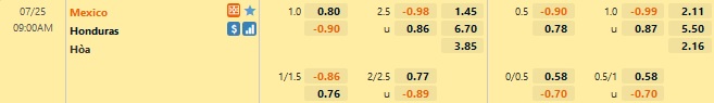 Chu kỳ lên xuống tỉ lệ kèo Mexico vs Honduras