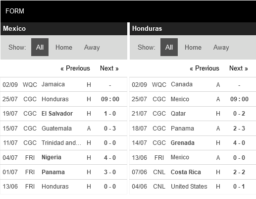 Trong 10 trận gần nhất, Mexico đạt thành tích bất bại với 6 chiến thắng. Tuy nhiên, tỉ lệ thắng kèo của họ chỉ dừng ở mức 50%. Trong khi đó, Honduras dù chỉ thắng 2 trong 10 trận gần đây nhưng tỉ lệ thắng kèo lên đến 67%. Đội tuyển này rất ưa thích những trận được chấp sâu và có thể sẽ thua Mexico nhưng không quá đậm ở trận tứ kết sắp tới.