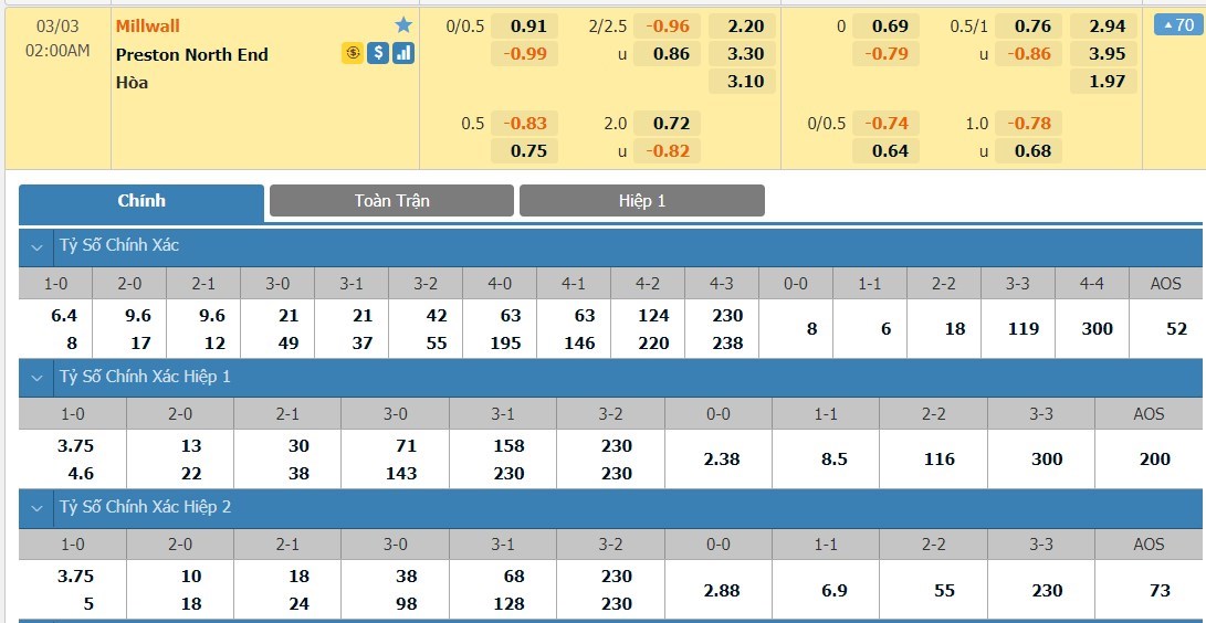 Theo chuyên gia phân tích thị trường cá cược Lucky88, kết thúc 45 phút đầu tiên, Millwall có tới 19 lần bước vào giờ nghỉ với kết quả hoà còn với Preston thì con số này cũng là 14. Hiệp 1 của trận tới sẽ không ngạc nhiên nếu có 1 kết quả bất phân thắng bại. 3 lần gần nhất mà 2 đội bóng có dịp chạm trán với nhau, Millwall hoàn toàn giành thắng lợi với các kết quả nhẹ nhàng trước Preston. Millwall đồng thời bất bại 5 vòng đấu trước đó tại thánh địa The Den của mình khi chỉ nhận duy nhất 1 bàn thua. Preston thì đã có tới 3 lần trắng tay trong 5 lần làm khách gần đây nhất. Chính vì thế, 90 phút tới dễ sẽ là 1 kết quả khả quan cho chủ nhà.