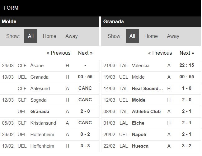 Phong độ sân khách và sân nhà của Granada đang là khá trái ngược. Mỗi khi phải hành quân xa nhà, Granada đang tỏ ra khá sa sút và với phong độ không thực sự ổn định, Granada không được đánh giá quá cao ở trận đấu này. Theo chuyên gia phân tích thị trường cá cược Lucky88, ở trận đấu lượt đi, Molde nhận thất bại 0-2 trên sân của Granada. Tuy nhiên, đội bóng này còn nguyên cơ hội ở 90 phút lượt về. Tại sân nhà, Molde đang có cho mình 7 thắng lợi, 1 thất bại và 2 kết quả hoà. Granada thì đang gặp rất nhiều khó khăn tại sân khách của mình. Những chú rồng đã toàn toàn 3 trận xa nhà gần đây nhất của mình. Cả 2 cùng đang có khó khăn về nhân sự khi Molde thiếu đi Ellingsen vì treo giò còn Granada có tới 9 cái tên sẽ vắng mặt ở đội 1. Molde đủ khả năng để có cho mình kết quả khả quan hơn so với trận lượt đi.