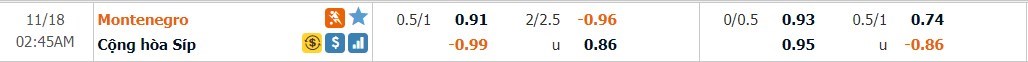 Tỷ lệ kèo cá cược bóng đá trực tuyến trận Montenegro vs Đảo Síp