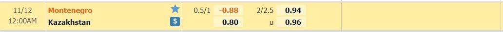 Xem tỷ lệ kèo cá cược bóng đá trực tuyến Montenegro vs Kazakhstan