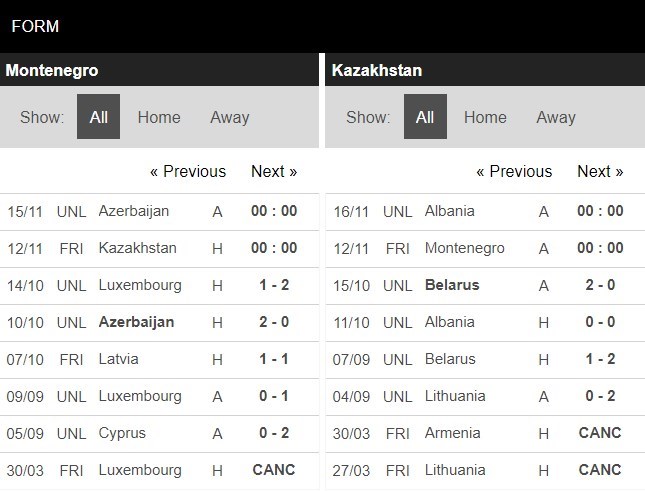 Thống kê phong độ Montenegro vs Kazakhstan