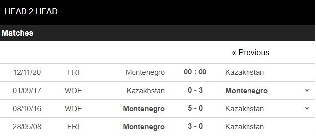 Thống kê đối đầu Montenegro vs Kazakhstan
