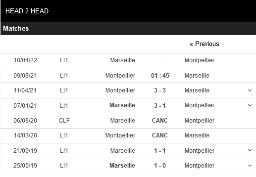 Chu kỳ lên xuống tỉ lệ kèo Montpellier vs Marseille