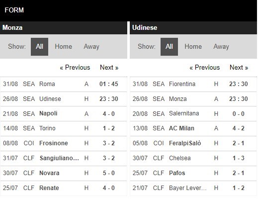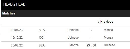 Udinese cũng chẳng có màn ra quân khá khẩm hơn tân binh Monza là bao khi ở 2 trận đấu gần nhất họ chỉ có cho mình 1 trận hòa và 1 trận thua. Ở vòng đấu mở màn, Udinese nhận thất bại được cho là dự báo từ trước với tỉ số 2-4 trước AC Milan thì có thể coi là chấp nhận được. Tuy vậy, trận hòa không bàn thăng trước Salernitana ở vòng thi đấu thứ 2 trên sân nhà cho thấy sự yếu kém của đội bóng này.