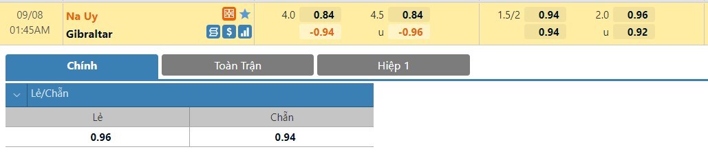 Tỷ lệ kèo cá cược bóng đá trận Na Uy vs Gibraltar