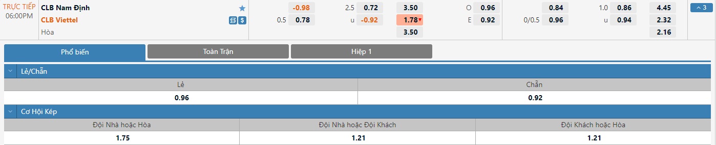 Tỷ lệ kèo cá cược bóng đá trận Nam Định vs Viettel