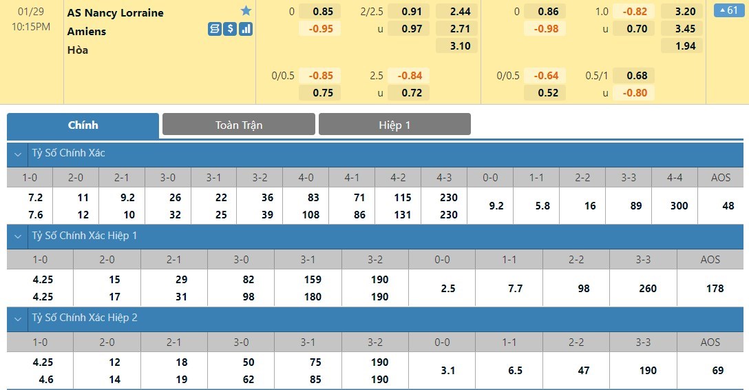Tỷ lệ kèo cá cược bóng đá trực tuyến trận Nancy vs Amiens