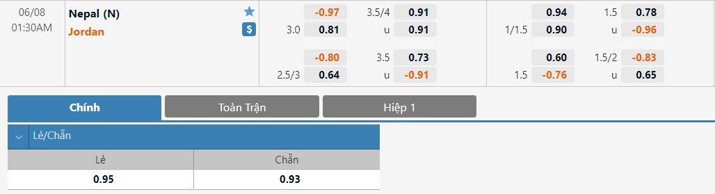 Tỷ lệ kèo cá cược bóng đá trận Nepal vs Jordan