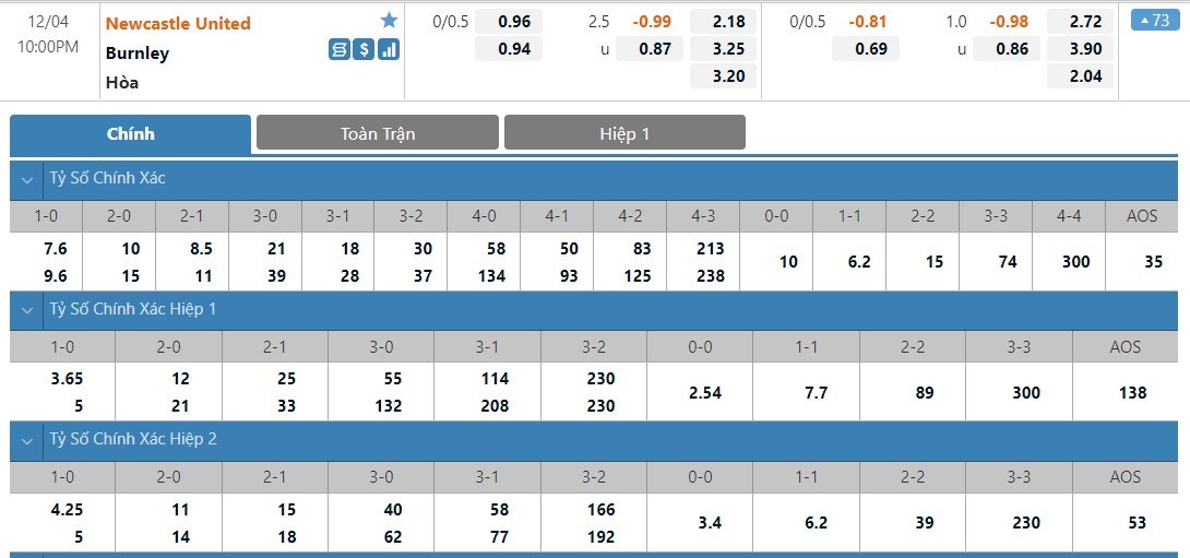 Tỷ lệ kèo cá cược bóng đá trận Newcastle United vs Burnley