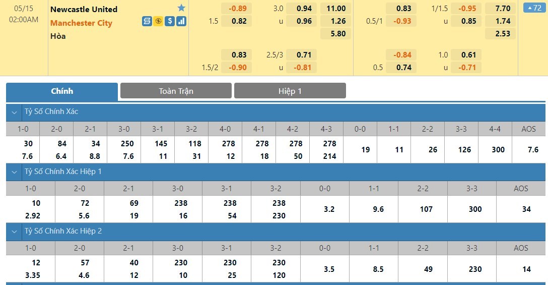 Tỷ lệ kèo cá cược bóng đá trận Newcastle vs Manchester City
