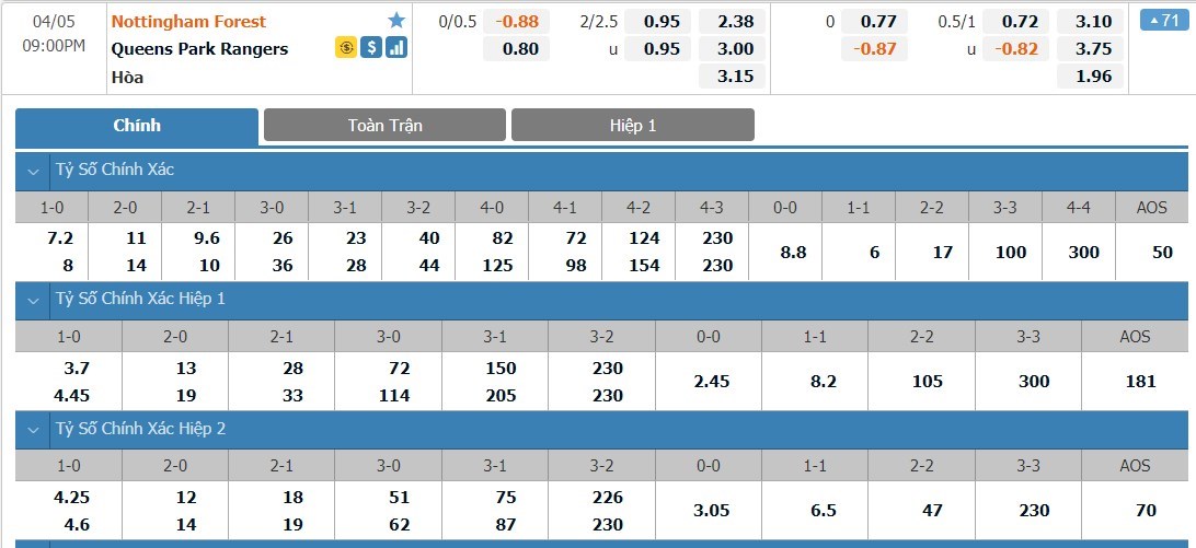 So sánh về phong độ, đội chủ nhà đang có phần lép vế so với đối thủ. Nottingham Forest không thắng nổi trận nào trong 6 vòng đấu trở lại đây. Ngược lại, Queens Park Rangers thắng 3/5 vòng đấu gần nhất. Vậy nên, với kèo đấu mà đội khách được chấp tỷ lệ +1/4 bàn thì người chơi nên chọn cửa dưới.