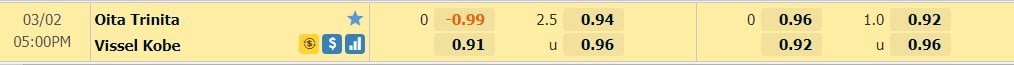 Tỷ lệ kèo cá cược bóng đá trận Oita Trinita vs Vissel Kobe