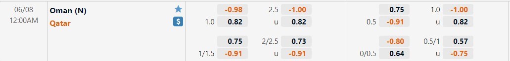 Tỷ lệ kèo cá cược bóng đá trận Oman vs Qatar