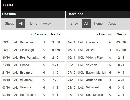 Trong 5 trận đấu gần nhất trên mọi đấu trường, Osasuna đã sở hữu cho mình 6 pha lập công cùng với 4 lần phải vào lưới nhặt bóng. Bên kia chiến tuyến, Barcelona đã mang về 11 bàn thắng, còn lại là việc hàng thủ đã phải nhận 5 bàn thua. Ở 5 trận đấu gần nhất hai đội bóng này đụng độ nhau trực tiếp thì đã có 4 trận đấu kết thúc với tổng số bàn thắng từ 3 trở lên. Các nhà đầu tư nên tin tưởng vào khả năng nổ Tài ở cuộc đối đầu này với tỷ lệ tài xỉu là 2 3/4 trái.