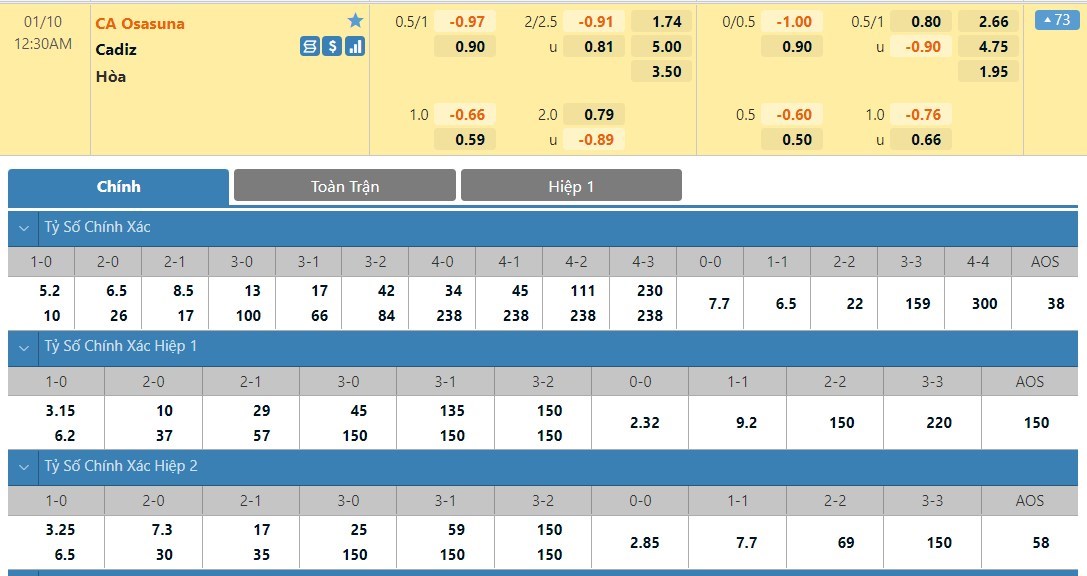 Tỷ lệ kèo cá cược bóng đá trận Osasuna vs Cadiz