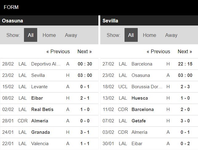 Xem tỷ lệ kèo cá cược bóng đá trực tuyến Osasuna vs Sevilla
