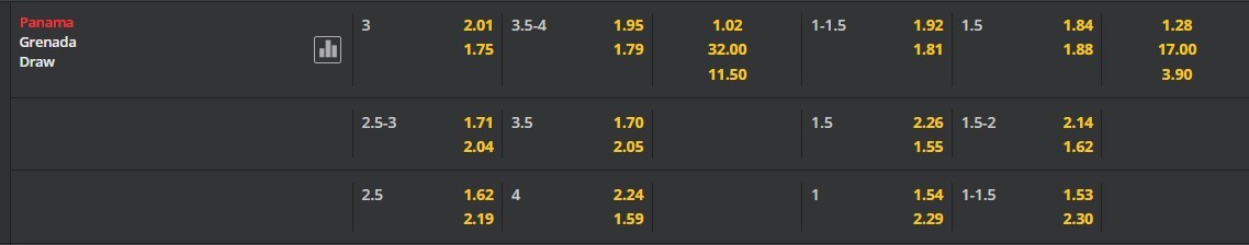 Tỷ lệ kèo cá cược bóng đá trận Panama vs Grenada